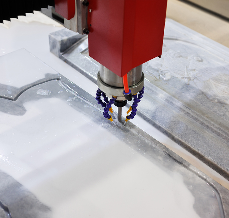 ● El proceso comienza con múltiples etapas de rectificado, progresando de rugoso a fino, para nivelar la superficie y eliminar rayones. A esto le sigue el pulido del espejo utilizando herramientas y materiales especializados para revelar completamente las vetas y el brillo naturales de la piedra.